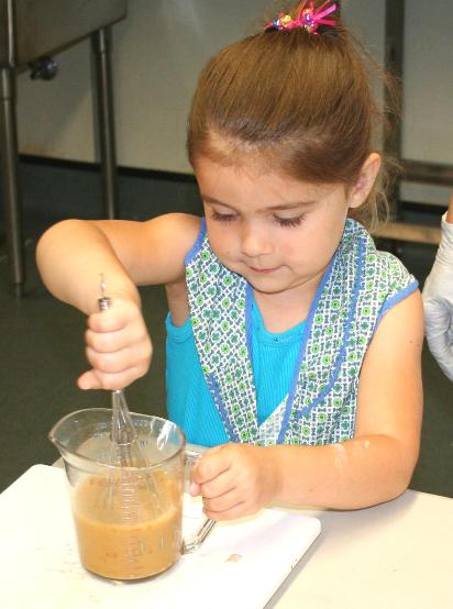 Whisking the sauce for the chicken Stir-fry. And all by herself.